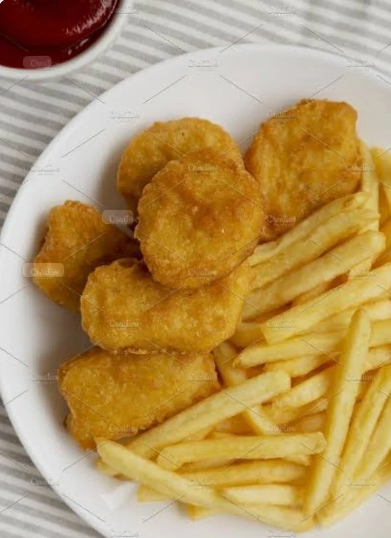 Children’s Chicken Nuggets and Chips, 100% Chicken pieces